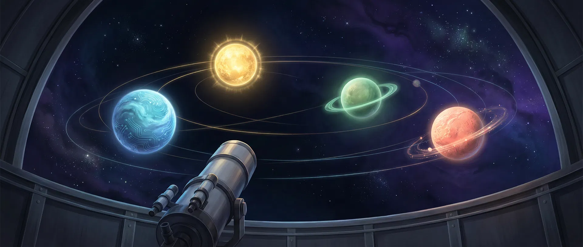 Интерфейс становится космосом, где ребёнок путешествует между мирами — не плоский каталог, а живая вселенная